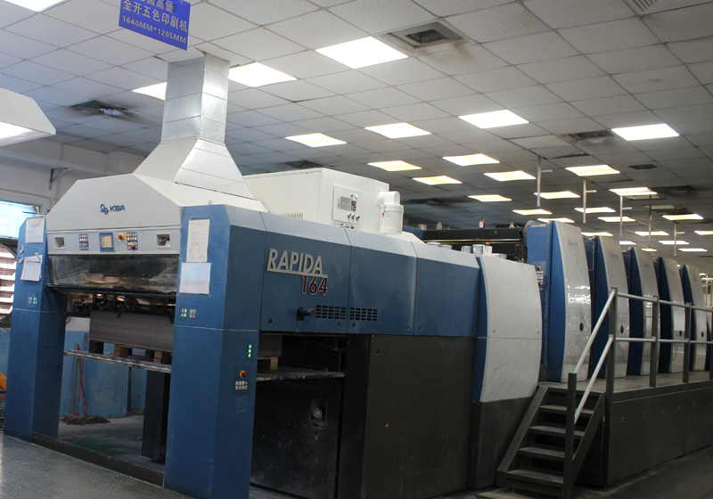 引進(jìn)德國(guó)羅蘭對(duì)開五色、羅蘭對(duì)開雙色、日本小森四開四色印刷設(shè)備,生產(chǎn)線完善